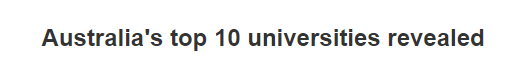 关于大学排名,世界上有很多榜单,就在近日,澳媒也公布了一份自己评判的澳洲大学排名,来自The Australian Financial Review的分析,澳洲前10的大学排名如下: