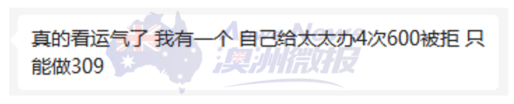 据中介的移民律师称,有一个客户给自己的太太办理600旅游签四次都被拒,最后只能转而申请309签证。