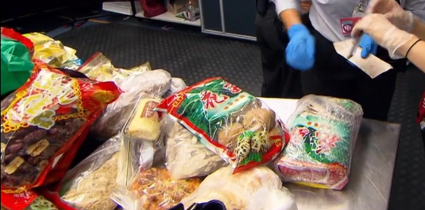 “ 你真的带了很多食物,然而你一样都没有申报。”