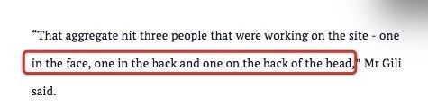 在工地工作的三名工人也不同程度地受伤了: