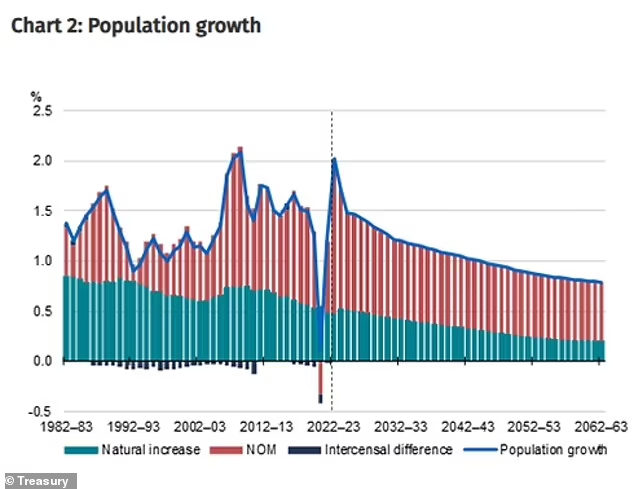 但财政部预计,随着澳大利亚人口到2062年从2650万增长到4050万,未来40年这一增速将放缓至1.1%,低于过去40年1.4%的水平。
