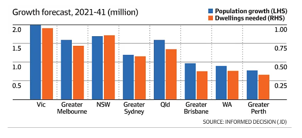 20年740万人口进入,每个地区都会迎来大量新人口,其中维州将会是澳洲人口增长最多的地区,预计到2041年人口要增长200万。