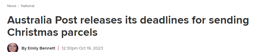 至于北领地的居民,包裹邮寄的截止日期是12月14日,快递邮寄则是12月20日。