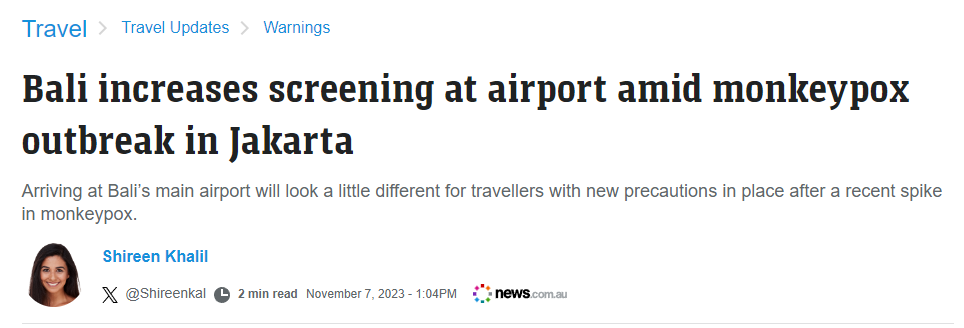 根据报道显示,所有想要进入巴厘岛的旅客都需要在机场接受检查,以确认没有感染任何传染病,特别是猴痘。