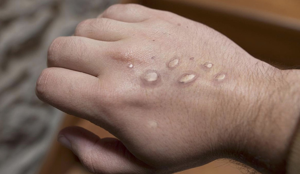它可以通过接触受感染者的体液、痂皮或水泡进行传播。
