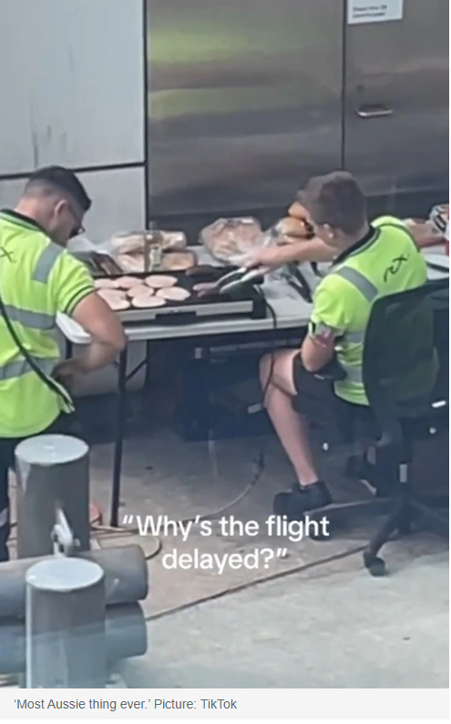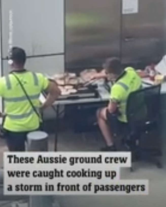 这段视频由Kirra Colquhoun上传,并配文称:“‘这就是为什么航班延误了?’”,配乐是Frankie Davidson的《The Aussie Barbeque Song》。