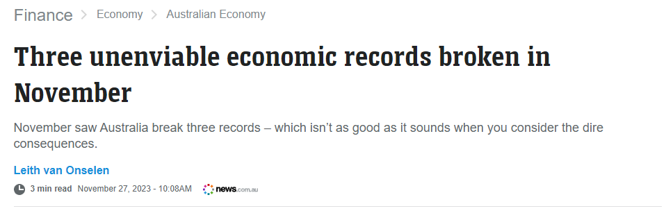经济学家表示,本月,因为整体经济问题,澳洲在经济管理和生活水平下降方面,直接跌破了三项最糟糕纪录!