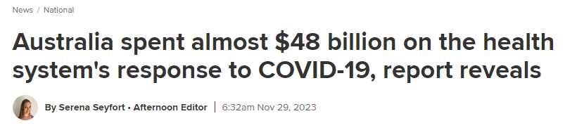 截止到目前,一项最新的统计数据显示,为了应对新冠,澳洲仅卫生系统就花费了480亿澳元。