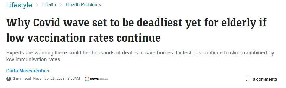 第八轮疫情潮爆发,但是澳洲人疫苗接种率极低,可能导致大量死亡病例出现,尤其在养老院内。