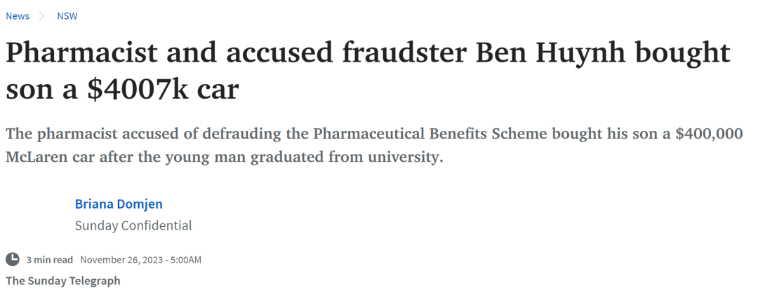 就在最近,Cabramatta East Day and Night药房的老板Ben Huynh牵扯上了大官司。他疑似利用自己的身份和药房作掩护,进行多项欺诈行为。