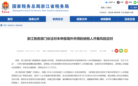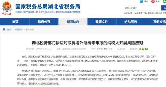 近期,上海、山东、浙江、湖北的税务机关接连发布多起未申报境外收入的典型案例通报。