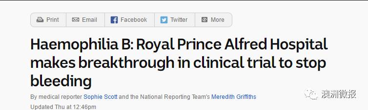 来自悉尼 RoyalPrince Alfred医院的研究人员宣布开创了一针治疗血友病的奇迹!