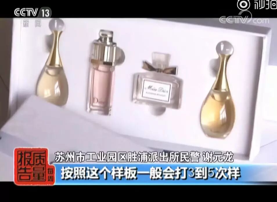另外,一款标称迪奥牌假香水套装,这款香水套装看上去包装十分精美,从内衬到logo,再到丝带一应俱全,单从外观普通消费者根本分辨不出与正品有何不同。