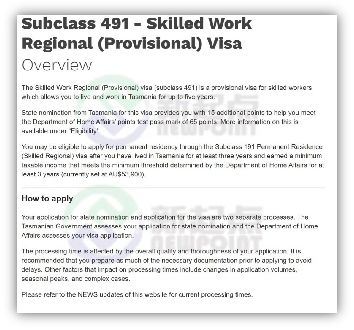 · 你必须有提名相关的塔斯马尼亚州工作的正式工作机会