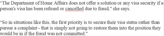 并且内政部明确表示过,因为欺诈而取消或被拒绝的签证,即便你是受害人,他们也不会提供任何解决方案或者是任何签证担保。