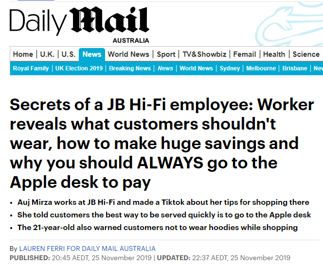 有人评论道:“我也在JB Hi-Fi上班,她说的是真的。”