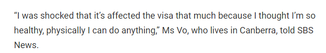 这种在东南亚很普遍的病毒感染对Sidney Vo的日常生活并没有带来太大的影响,但却让她失去了在澳大利亚永久定居的机会。