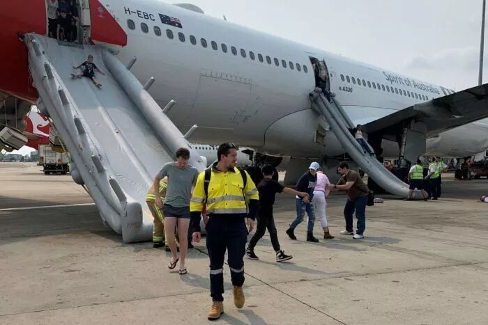 “撤离,撤离” 澳航乘客们使用充气滑梯疏散!