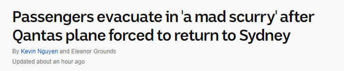 在澳航飞机返回迫降悉尼机场后,乘客们在疯狂地匆忙撤离!
