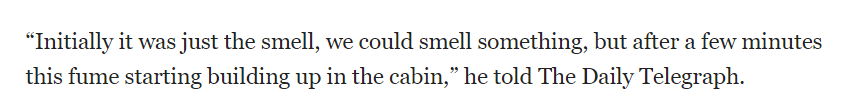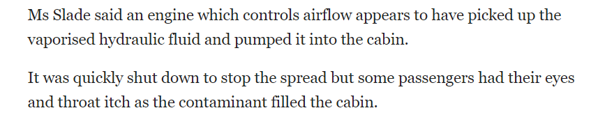 澳航机长黛比·斯拉德(Debbie Slade)表示,本次的故障应该是某些液压油被泵入了空调系统进入了客舱。飞机油液泄漏,会影响着陆控制和襟翼,如果强行继续飞会引发重大事故。
