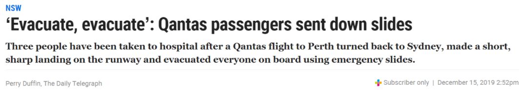 据报道,澳航一架飞往珀斯的QF575航班由于“工程故障”,在飞机起飞后不久就紧急返航迫降悉尼机场,机上乘客被紧急疏散,有3名乘客送医。