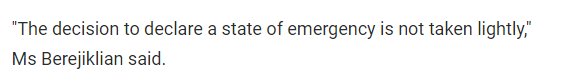 火势彻底失控了!在情势如此严峻的情况下,新州州长Gladys Berejiklian女士今天早上紧急宣布: