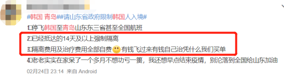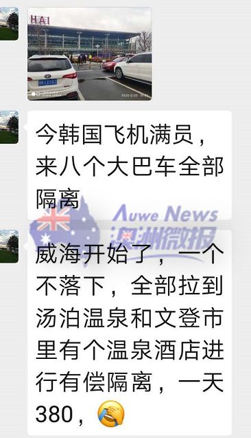 根据爆料者表示,如今的威海危险性较大,保守估计有韩国打工者30万,来往中韩的航班、船次也会较多,对于政府来说隔离工作难度较大。