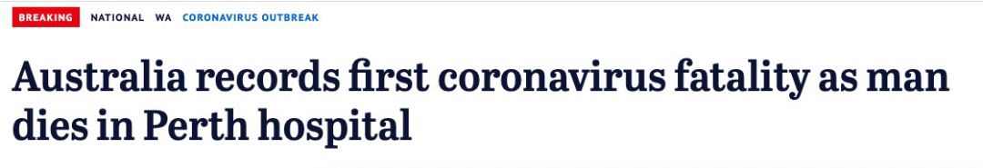 据澳媒报道,珀斯一名男子成为澳大利亚首位冠状病毒感染死亡病例!