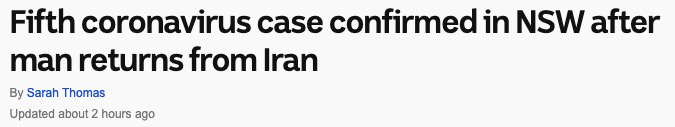这一最新确诊病例于2月22日从伊朗抵达悉尼。他直到2月24日才出现症状,2月28日在医院接受了检查。