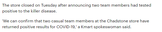 经证实,这家Kmart有两名员工对病毒检测呈阳性。