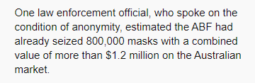 累计5110!澳洲海拦截80万国内来的口罩,全部充公!囤积医疗用品出口,贩卖测试盒都将获罪,坐牢5年!