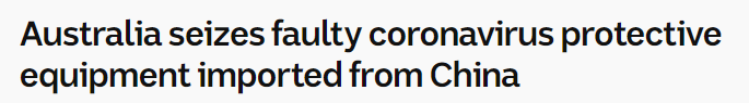 根据媒体报道,日前澳洲边境管理局查获了大量来自中国的医疗物资,其中包括口罩和防护服。