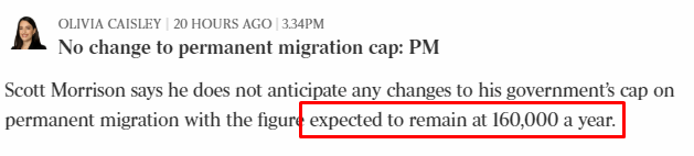 其实去年5月的时候,莫里森政府已经宣布,未来4年内澳洲的永居移民配额将保持16万不变。