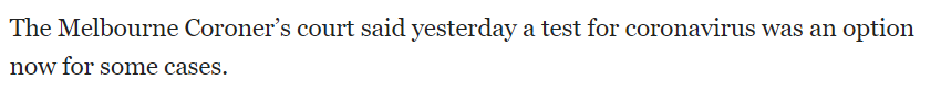 墨尔本法医院的一名发言人称,如若有样本,验尸官可以在需要调查的任何时候进行测试,以确认真正的死因。